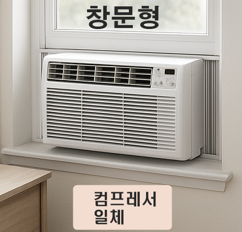 - 실외기는 불필요하나 컴프레서(압축기)와 일체형이다.