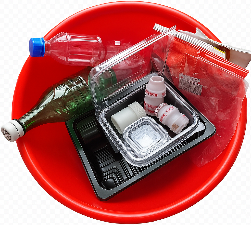 - 대부분의 일상생활용 플라스틱(페트병, 비닐봉지, 식품용기 등)이 이에 해당합니다.